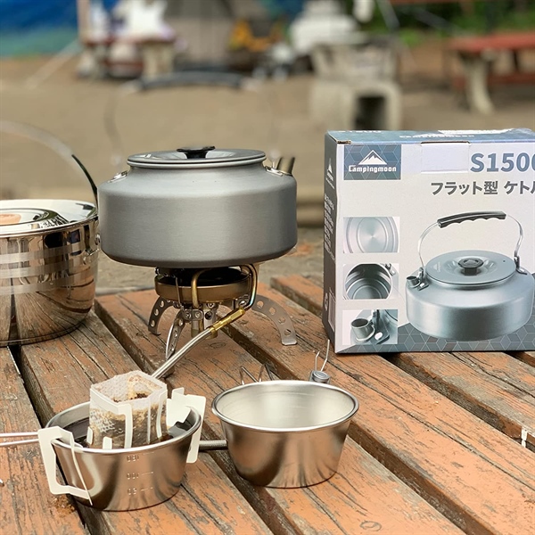 Ấm đun nước bằng nhôm Campingmoon S1500 (1,5 lít) bằng hợp kim nhôm cứng 1,5 lít này có trọng lượng chỉ 220gram nhẹ và nhỏ gọn để cắm trại, dã ngoại.