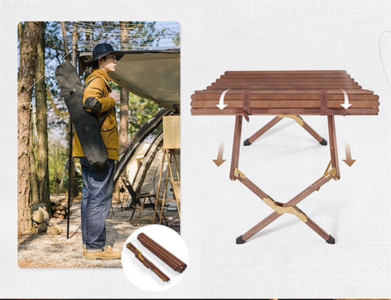 Bàn gỗ cuộn Glamping Naturehike NH21JU002 làm từ gỗ tự nhiên, các ốc bằng đồng đem lại cảm giác sang trọng, thời trang, chắc chắn, tải trọng lên đến 30kg đem đến hiệu năng và tính thẩm mỹ cho không gian cắm trại. Chiếc bàn có 2 kích cỡ M và L chiều cao vừa phải để đặt được cả trong lều cũng như ngoài trời, trên thảm picnic cũng như decor tại nhà, làm bàn đọc sách, bàn trà, cafe,… Với kiểu gấp gọn dạng cuộn , việc gấp gọn và mở ra cực kỳ đơn giản cũng như tránh cong gãy tốt hơn vì rất ít khớp gập.