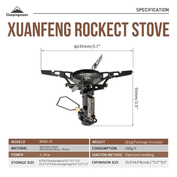 Bếp gas dã ngoại xếp gọn Campingmoon XD-2F rất nhẹ & có thể gập lại & nhỏ gọn. Bạn có thể gấp giá đỡ nồi của bếp và tháo nó ra khỏi thân bếp, cho vào túi đựng đi kèm.
