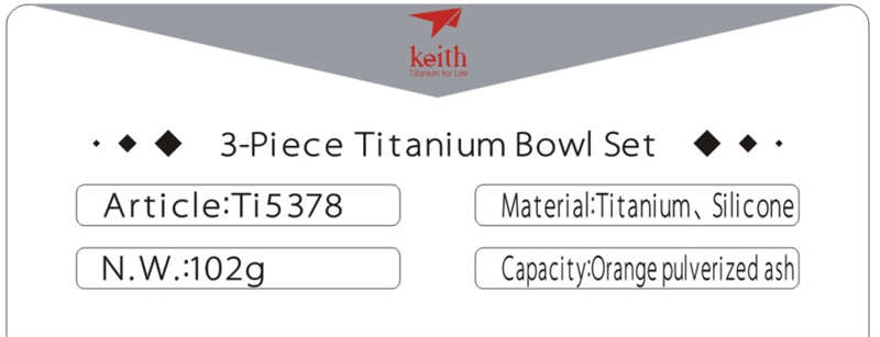 Keith là tập đoàn chuyên thiết kế, nghiên cứu và sản xuất đồ dùng titanium nguyên chất có quy mô lớn nhất thế giới, được chứng nhận ISO 9001: 2008 (bởi CNAS, thành viên của IAF). Đây cũng là Nhà sản xuất được chứng nhận GMC (được kiểm toán bởi TÜV Rheinland). Các mẫu sản phẩm titan của Keith đã vượt qua bài kiểm tra Cấp thực phẩm EU của Đức với chứng nhận German LFGB và bài kiểm tra FDA của Hoa Kỳ (cả hai được thực hiện bởi SGS).