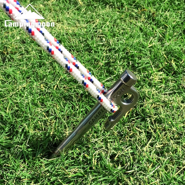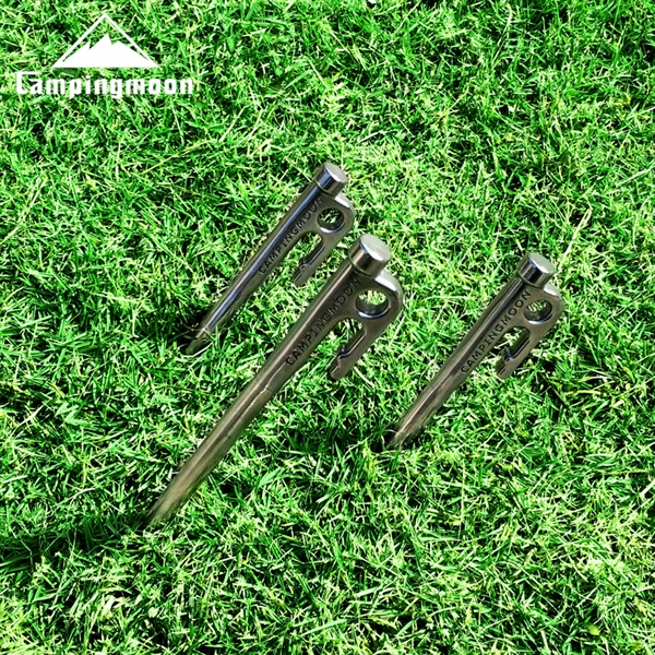Cọc cấm lều Campingmoon R26 (26cm): thiết kế đầu nhọn vừa phải, dễ dàng đóng xuống đất nhưng không gây sát thương. Có móc để nhổ lên dễ dàng. Dễ dàng sử dụng. Cố định lều chắc chắn.