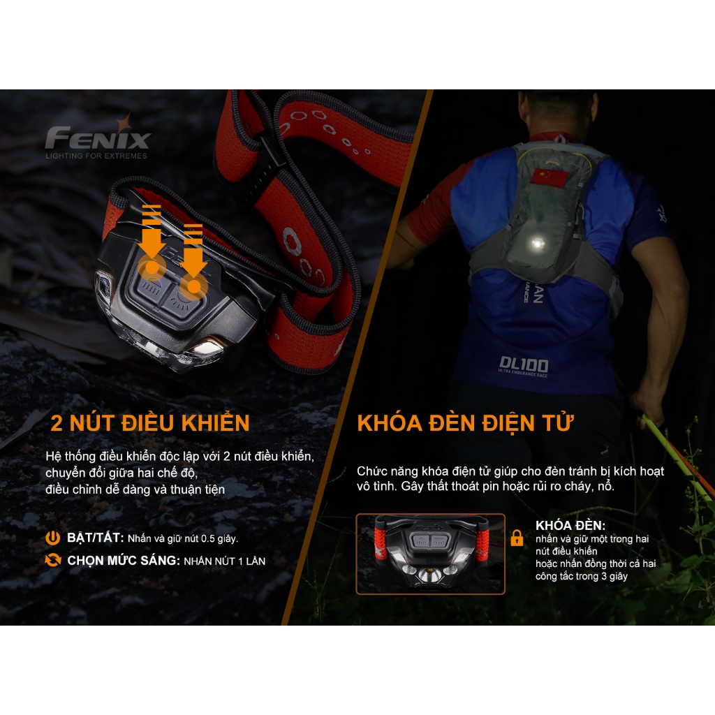 – Đèn pin Fenix HL18R-T có 2 nút nhấn độc lập, nhanh chóng truy cập chế độ sáng nhanh mà không cần quá nhiều thao tác. Ngoài ra nhấn đồng thời 2 nút 1 lần để khóa đèn, tránh tình trạng vô tình đèn bật sáng.