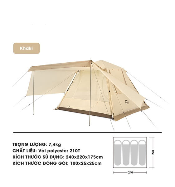 Lều cắm trại 4 người tự bung Ango Pop-up Naturehike NH21ZP010